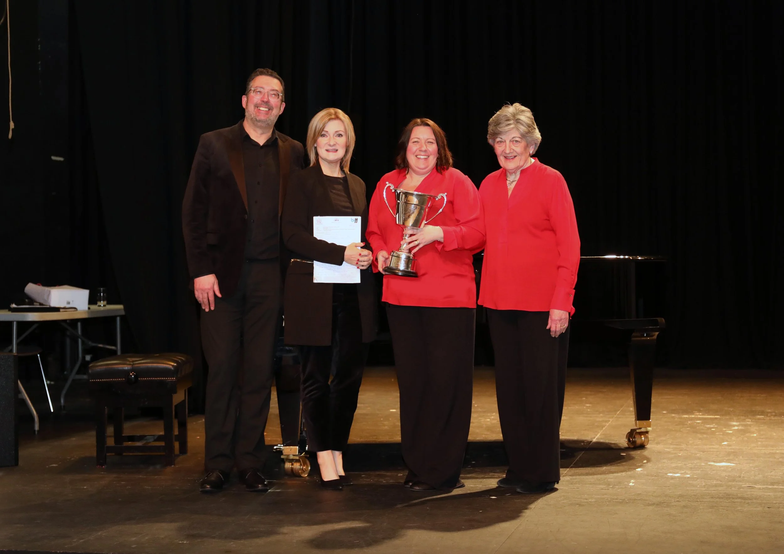 The cup was presented to Paula Spence, Choir Chairperson, and she is pictured above with Darren Day, Accompanist, Sheelagh Greer BEM, Director of Music, and Anne Demick, Choir Secretary.